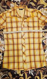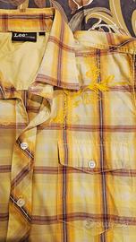 Camicia da uomo marca Lee, a maniche corte con fantasia a quadri. - Fantasia a quadri gialla con dettagli marroni. - Due tasche sul petto. - Chiusura con bottoni. - Ricami decorativi sulla parte anteriore. - 100% cotone