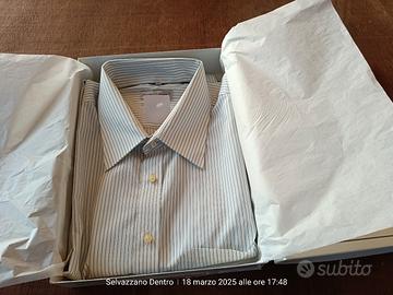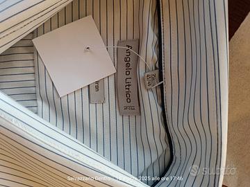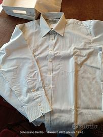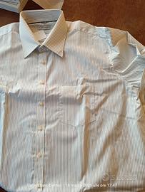 Camicia uomo maniche lunghe ANGELO LITRICO. Bianca con righine blu. Cotone 100%. Taglia XXL.