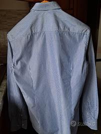 Camicia uomo Morris, taglia 15 1/2 - 39. A righini bianchi e blu. Due pinces sul dietro. Fabbricato in Italia. Larghezza spalle 42, lunghezza 79. Consegna tra Voltri ed Arenzano oppure spedizione