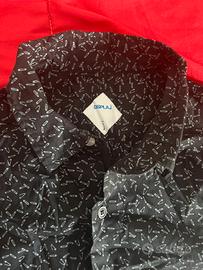 Camicia nera da uomo a maniche lunghe, con dettagli a spillo bianchi, molto elegante e particolare. In perfette condizioni, tessuto praticamente nuovo, quasi al 100% in cotone, leggero e confortevole. Marca Displaj. Taglia L.