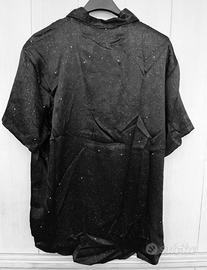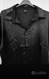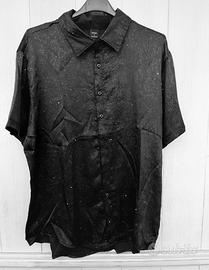 Manfinity Camicia casual monopetto lucida a maniche corte da uomo Taglia S Colore nero con glitter Tessuto leggero Nuova per errato acquisto