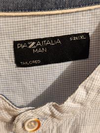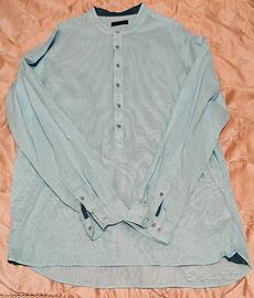 Vendo per inutilizzo e per taglia sbagliata questa camicia di cotone celestino, con colletto alla coreana e trama a quadratini del marchio Piazza Italia, taglia XL, COME NUOVA, mai indossata e lavata una volta sola.