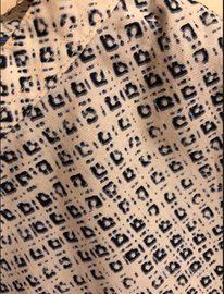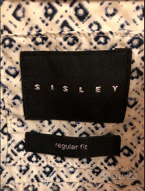 Camicia in cotone con colletto a stile coreano, regular fit. Colore bianco con fantasia blu. Spalla 44cm lunghezza 75cm.
