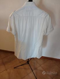 Camicia marca Bibly Project Slim modello a mezza manica di colore bianco, caratterizzato da un design funzionale ispirato alle uniformi militari, da pilota o per equipaggi nautici.