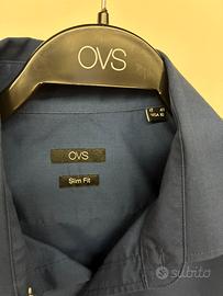 Camicia da uomo, modello Slim Fit, colore blu tinta unita.