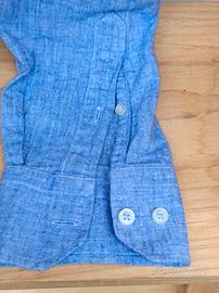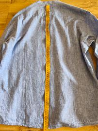 Bellissima camicia da uomo firmata Sorbino, appartenente alla "Linen Collection". Perfetta per la stagione primaverile ed estiva grazie al suo tessuto fresco e traspirante. Colore: Azzurro polvere / Melange (molto versatile, si abbina bene sia con jeans che con pantaloni chiari). Modello: Collo alla coreana (mandarin collar) per un look casual ma ricercato. Composizione: Pregiata miscela di 60% Lino e 40% Cotone (mantiene la forma meglio del lino puro ed è più morbida sulla pelle). Dettagli: Bottoni chiari a contrasto. Piccola placchetta metallica logata "Sorbino" sul retro (sotto il colletto). Maniche lunghe con polsini classici. Taglia: L (Veste regolare). Condizioni: Ottime condizioni, usata pochissimo. cm.69 lunghezza totale 56cm.ascella 48 cm.spalla