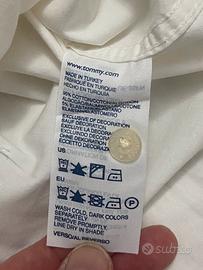 Camicia uomo Tommy Hilfiger classic denim bianca taglia Large manica lunga con polsini a doppio bottone, vestibilità slim fit, tessuto fresco cotone, classico logo brand cucito sul petto, in ottime condizioni senza nessun difetto o imperfezione. Vendo per inutilizzo. Misure: Larghezza spalle: 48cm Larghezza torace(ascella/ascella): 57cm Lunghezza totale: 75cm Lunghezza esterno manica: 68cm Lunghezza interno manica: 51cm