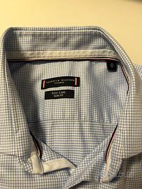 Vendo camicia da uomo di Tommy Hilfiger, easy care, slim fit, quadrettini bianchi e azzurri, taglia 41/16, indossata poco quindi condizioni ottime