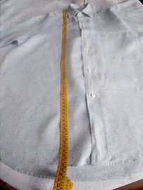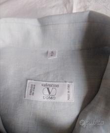 Titolo: Camicia Valentino Uomo Vintage in Lino Azzurro - Taglia 41 Esclusiva camicia a maniche corte vintage firmata Valentino Uomo, un classico senza tempo del Made in Italy. Realizzata in pregiato 100% lino, questa camicia offre una freschezza e una traspirabilità ineguagliabili, ideali per la stagione estiva. Il colore è un raffinato azzurro polvere con la caratteristica trama fiammata del lino. Il capo si distingue per l'attenzione ai dettagli e i simboli iconici del brand: Logo "V" ricamato tono su tono sul taschino sul petto. Chiusura: 7 bottoni esterni logati + 2 bottoni di cortesia interni per un tocco signature discreto ma inconfondibile. Carré posteriore dritto con soffietto centrale (box pleat) per comfort e libertà di movimento, completato da un passante decorativo. Fondo arrotondato e asimmetrico, più lungo sul retro. Ottime condizioni vintage. L'etichetta dei materiali è presente ma difficile da leggere poiché cucita internamente in modo anomalo; tuttavia, la texture, la mano fresca e la resa alla stiratura confermano trattarsi di 100% lino di alta qualità. Misure (prese in piano): Taglia a etichetta: 16 / 41 (L) Spalle: 65 cm Lunghezza anteriore: 78 cm Lunghezza posteriore: 84 cm Maniche: 26 cm 🇬🇧 ENGLISH Valentino Uomo Vintage Linen Short Sleeve Shirt Blue - Size 41 Exclusive vintage short-sleeved shirt by Valentino Uomo, a timeless classic of Italian luxury. Crafted from premium 100% linen, this shirt offers unparalleled coolness and breathability, making it ideal for the summer season. The color is a refined powder blue featuring linen's characteristic slub texture. This garment stands out for its attention to detail and iconic brand signatures: Tone-on-tone embroidered "V" logo on the chest pocket. Closure: 7 branded outer buttons + 2 inner spare buttons for a subtle yet unmistakable signature touch. Design: Straight back yoke with a central box pleat for comfort and freedom of movement, finished with a decorative hanger loop. Made in Italy