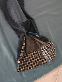 Camicia uomo Xacus, colore blu jeans con toppe ai gomiti, misura collo 39, interno collo e interno polsini a quadretti.
