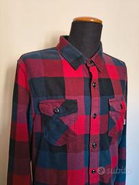 Camicia Vans, pattern a quadri in tonalità rosso/bordeaux e blu notte/nero, morbida e calda, perfetta per outfit casual e layering.