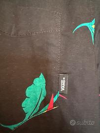Camicia vintage a maniche corte con taschino, marca Vans linea Off the Wall, nera con motivo floreale stle Miami night Capo da collezione