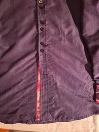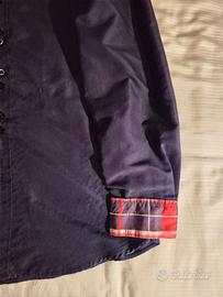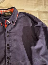 vendo camicia versace blu, taglia M. colore blu marino con inserti rossi e bianchi sul colletto e sui polsi. misure approssimative in centimetri indicate in foto (da spalla a spalla 48, torace 51, lunghezza camicia 70, lunghezza manica 62, larghezza polso 12, base 51), maniche lunghe. ottimamente tenuta, indossata pochissime volte, come nuova, appena lavata e igienizzata, comodissima e stupenda. un sarto la ha opportunamente modificato e veste slim ma si può riportare alle dimensioni originarie. euro 20