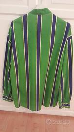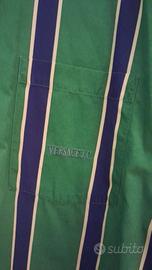 VENDO CAMICIA VERSACE UOMO, COLOR VRDE CON RIGHE BLU E GIALLE. TAGLIA XL DI COTONE E LAVABILE IN LAVATRICE. CON COLLO A FASCIETTA E BOTTONCINI CON IL TIPICO LOGO DEL MARCHIO E CON SCRITTA VERSACE RIBATTUTA NEL TASCHINO COME DA FOTO. TENUTA MOLTO BENE. E.100.