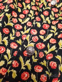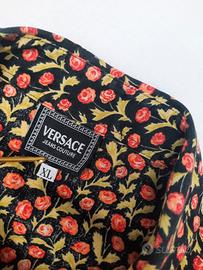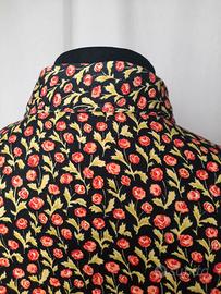Bellissima camicia da uomo firmata Versace Jeans Couture, made in Italy dalla storica azienda molisana Ittierre. In cotone con motivo floreale di piccole roselline su fondo nero. A maniche lunghe, con bottoni in metallo argentato con l'iconica Testa di Medusa in rilievo. Articolo da collezione, vintage anni '90, in ottime condizioni. Taglia riportata XL. Misure prese sulle cuciture: spalle 64cm, manica 60, lunghezza 82, torace 64.