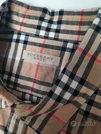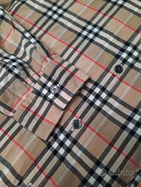 Elegante camicia da uomo firmata Burberry Brit. Stupendo tessuto in cotone con l'iconico motivo Check tartan a quadri di Burberry. A maniche lunghe, con bottoni logati effetto lucido. In ottime condizioni. Taglia riportata L, Il ragazzo in foto è M/L. Misure prese sulle cuciture: spalle 49cm, manica 69, lunghezza 76, torace 58, vita 53.