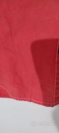 Taglia S, colore rosso con cuciture a contrasto bianche. Bottoni color oro con logo Medusa tipico della maison.