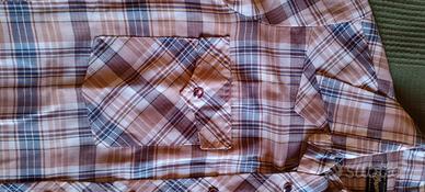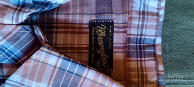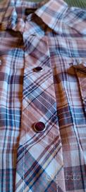 Camicia estiva a quadri da cowboy con taschini e bottoni in madreperla, maniche corte marca Wrangler made in USA Vestibilità slim tg. S