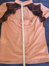 camicia XTSY rosa cipria con pizzo nero taglia S