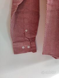 Vendo camicia da uomo a maniche lunghe di colore rosso con motivo a micro fantasia, ideale per un look casual o formale.