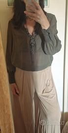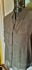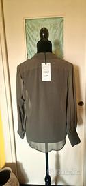 Camicia Zara in crepe di poliestere colore verde bosco. Tg XS, vestibilità comoda e fluida, può vestire anche una S. Taschine applicate sul davanti, polsini alti con 3 bottoncini. Tutti i bottoni sono rivestiti. Leggermente più lunga dietro. Nuova con cartellino e mai indossata. Lunghezza dietro 67 cm, davanti 58 cm, spalle 44 cm, da ascella ad ascella 50 cm,