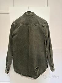 Camicia Zara da uomo in jeans verde salvia taglia M. La camicia ha due tasche nella parte anteriore e presenta alcuni deterioramenti tipici fatti in produzione. Usata poche volte !