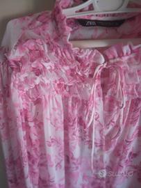 Camicia estiva di tessuto leggerissimo di Zara collezione 2023/24.Fondo bianco con rose rosa acceso quasi fucsia.Molto d'effetto. Cade diritta.Piccole rouges davanti.Taglia xs ma veste anche s.Indossata una volta