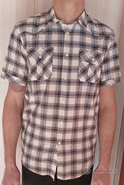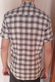 Camicia a mezze maniche di "Zara Man" con tutti i suoi bottoni Taglia: L 63% cotone 36% poliestere 1% elastane Modello 1,87mt 85kg.