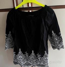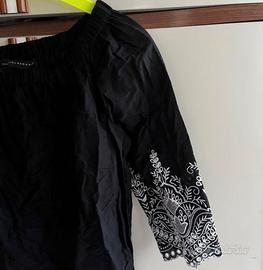 Camicia Zara manica 3/4 Modello elegante e raffinato Ricamo bianco a dettaglio Perfetta per ogni occasione
