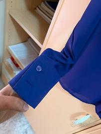 ✨ Vendo splendida camicia firmata Zuiki color viola intenso (prugna/viola elettrico). Il punto forte di questo capo è il colletto decorato con piccoli strass/punti luce, che la rende perfetta sia per l'ufficio che per un'uscita serale.