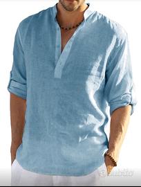 tre camicie, bianca, azzurra e verde militare 100% cotone con collo alla coreana.