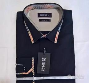Vendo camicie BLUMEN nuove con cartellino, modello Slim Fit. Tessuto di qualità con dettagli check su collo, polsi e toppe ai gomiti.