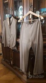 - pigiama marrone completo pantaloni e giacchina con collo, profili e disegno ricamato in raso. A euro 15.