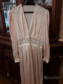 - camicia notte lunga in acetato rosa delicato con maniche lunghe, una fascia in vita sul davanti con ricami e pizzo. A euro 15.