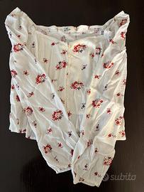 Camicietta bianca a manica lunga con fiorellini rossi-indossata una sola volta-condizioni ottime-morbida