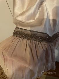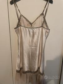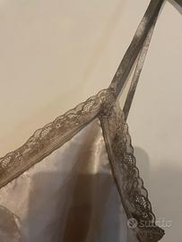 Elegante camicina da notte in stile francese, perfetta per un tocco di raffinatezza. - Tessuto in raso lucida. - Dettagli in pizzo sul décolleté e sul fondo. - Spalline sottili regolabili.