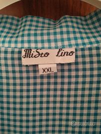 camiciola estiva misto lino a quadretti celeste e bianco. senza maniche. taglia XXL