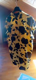Camicione in pura seta marchio "GENNY" color giallo con fiori neri tg.44