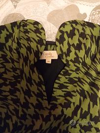 Il tessuto è caratterizzato da una stampa a motivo pied de poule in una combinazione di colori verde lime e nero.