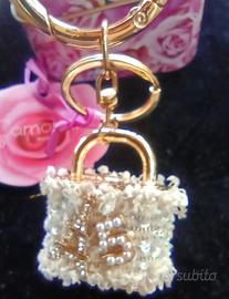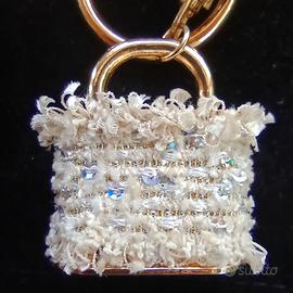 Camomilla portachiavi a forma di lucchetto, bianco con paillettes argento che lo rendono molto luminoso.