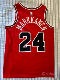 Stupenda canotta Nike Chicago Bulls numero 24 player Mark Kanen, modello swingman, taglia M. Condizioni pari al nuovo perché conservata sempre con cura in armadio, dalla mia collezione privata. Ogni dettaglio presente e in ottime condizioni.