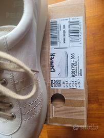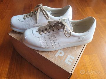 Scarpa bianca da donna in pelle con soletta in PU e suola in gomma.