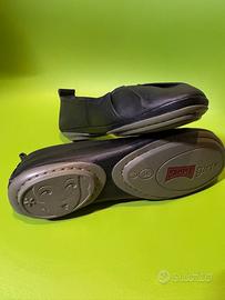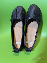 Ballerine da donna in pelle nera con fodere in poliestere riciclato e pelle, plantari in EVA e suole in gomma. Mai indossate per errore di taglia come visibile dal plantare nuovo e dalla scuola