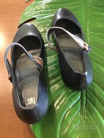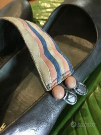 Misura 39, indossate una volta, in pelle nera con cinturino grigio, blu e rosa antico.