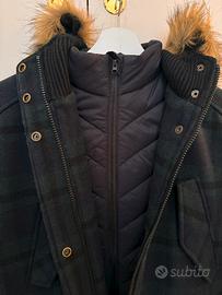 Composizione: tessuto esterno - 35% lana 50% poliestere 9% nylon 6% acrilico - faccia interna del tessuto, fodera nelle maniche e composizione del gilet interno: 100% poliestere