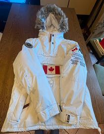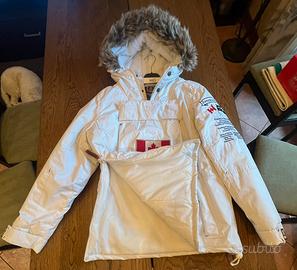 Vendo giubbetto canadian peak 1988 taglia S come si vede in foto non ha nessun difetto usato pochissime volte, ha i lacci per regolare la larghezza del busto e strappi per i polsi e tasca grande centrale , il giubbetto si può usare sia con il cappuccio con la pelliccia che senza basta solo aprire la zip . Zona Roma , prezzo trattabile