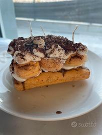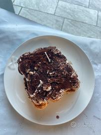 Candela tiramisù riporodotta con niscotto savoiard e panna . Fagranza biscotto &cake Cera di soia Fatto a mano