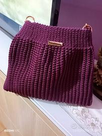 Candy bag lavorata in cordino thai amaranto con tracolla fatta a mano