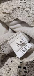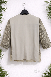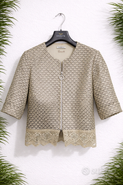 Completo elegante Cannella, composto da abito smanicato e giacca coordinata, taglia 42. Un set raffinato, perfetto per cerimonie, eventi, comunioni, cresime e occasioni speciali. Il tessuto strutturato valorizza la figura, mentre i dettagli come il fiocco decorativo dell’abito e il bordo in pizzo della giacca aggiungono un tocco chic e femminile. Capo Made in Italy, raro e difficile da trovare. Condizioni: buone. Presenta piccole macchioline da armadio, visibili in foto e probabilmente rimovibili con un lavaggio delicato. Nessun difetto strutturale. Misure reali Giacca • Lunghezza: 54 cm • Spalle: 37 cm • Ascelle: 46 cm • Maniche: 35 cm (modello con manica corta particolare) Abito • Lunghezza: 90 cm • Spalle: 34 cm • Ascelle: 44 cm Vestibilità perfetta per una 42 elegante e leggermente strutturata. Dettagli • Marca: Cannella • Taglia: 42 donna • Made in Italy 🇮🇹 • Colore: beige/avorio con fantasia geometrica • Abito smanicato con fiocco decorativo • Giacca con zip frontale e bordo in pizzo • Tessuto strutturato, elegante e femminile • Ideale per cerimonie ed eventi Spedizione ✔️ TuttoSubito (tracciata e sicura) ✔️ Ritiro a mano disponibile a Catania