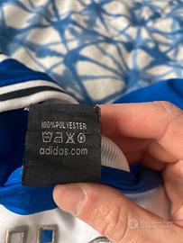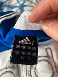 Vendo canotta stile basket marchio Adidas, perfetta per look streetwear/vintage anni 2000 (Y2K). Colorazione bianco/blu con logo frontale grande e dettagli ricamati (patch e numero 77). 🔹 Vestibilità ampia (indicata come 2X, veste circa XL/XXL) 🔹 Materiale leggero 100% poliestere 🔹 Ottima per outfit casual, palestra o collezione vintage 🔹 Buone condizioni generali (normali segni di utilizzo, vedi foto) 📏 Misure 60 cm da ascella ad ascella / 80 cm lunghezza 💬 Disponibile per qualsiasi domanda Prezzo trattabile.
